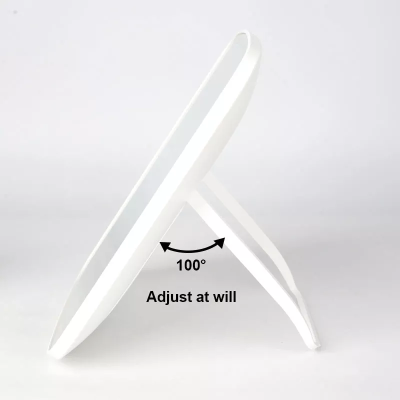 Echipată cu un suport pliabil care se ajustează până la 100°, această oglindă oferă unghiuri de vizualizare flexibile pentru machiaj, îngrijire sau îngrijire confortabile. Baza triunghiulară stabilă menține oglinda în siguranță, în timp ce designul subțire și ușor o face ușor de pliat și transportat, perfect pentru călătorii sau retușuri din mers.