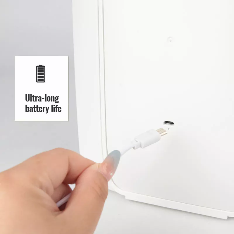 Alimentată de o baterie reîncărcabilă încorporată, această oglindă acceptă încărcare rapidă USB-C și oferă o durată de viață foarte lungă a bateriei pentru utilizare prelungită. Nu este nevoie de reîncărcare frecventă, făcându-l fiabil atât pentru utilizarea zilnică acasă, cât și pentru călătorii lungi. Designul LED eficient din punct de vedere energetic reduce, de asemenea, consumul de energie.