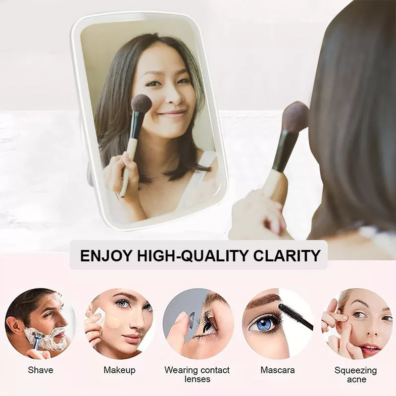 Această oglindă de machiaj cu LED de masă are 3 moduri de lumină reglabile (rece, naturală, caldă) pentru a se potrivi cu diferite scenarii de machiaj, oferind o iluminare reală pentru o aplicare precisă. Suportul său reglabil la 100° permite unghiuri de vizualizare flexibile, în timp ce designul subțire și ușor asigură o portabilitate ușoară.
